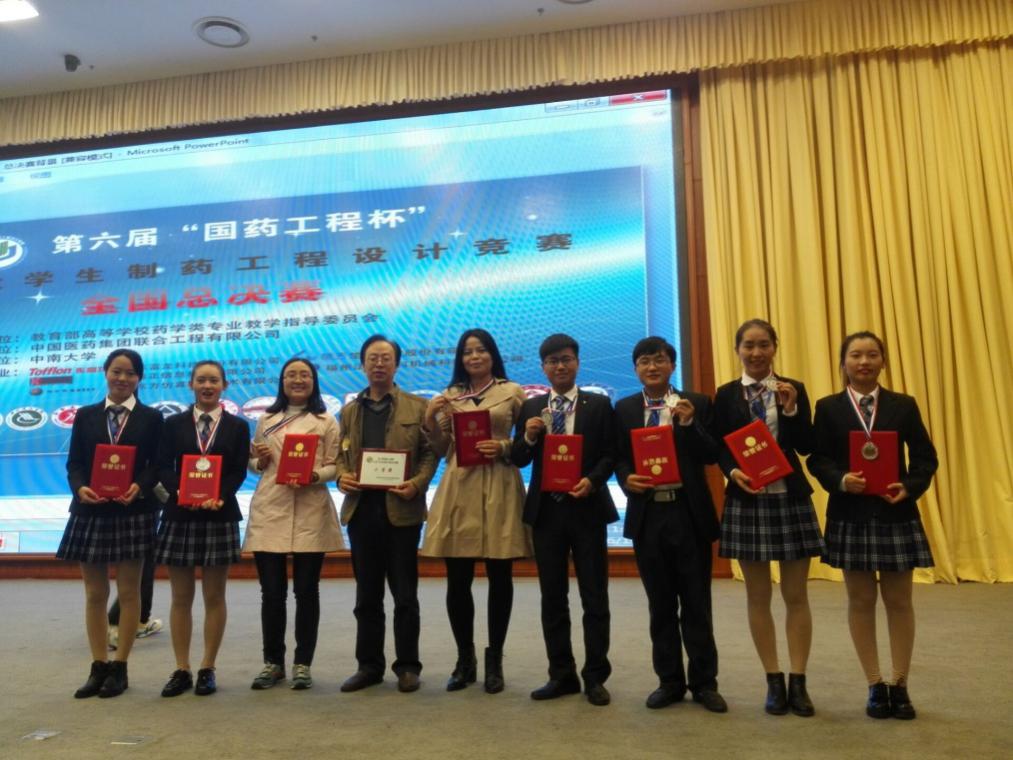 近日,公司由卫粉艳、王辉、陈虎魁、赵立芳等老师指导的制药工程专业2013级本科生“胜羽队”团队获得了第六届“国药工程杯”全国老员工制药工程设计竞赛二等奖。