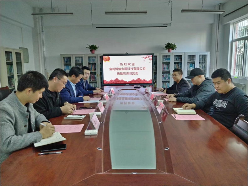会上,胡登卫对宝鸡博信金属科技有限公司闫硕一行来金年会金字招牌诚信至上考察交流校企合作表示热烈欢迎,并就金年会金字招牌诚信至上的专业设置、硕士点建设、团队建设、团队队伍、科研平台、仪器设备和服务地方等情况作了详细介绍。闫硕介绍了宝鸡博信金属科技有限公司的基本情况,针对当前公司生产研发中遇到的技术瓶颈、工艺优化等问题作了细致说明,希望通过校企合作的方式,引进公司的科研成果和科研力量,为企业的发展提供技术支持和解决方案,提高市场竞争力。座谈会期间,双方人员就企业需求展开深入、全面的讨论,并达成初步的合作共识。胡经理和闫经理就进一步落实校企合作表达了殷切希望,希望通过双方合作,共同推动彼此的发展,为社会做出更多的贡献。