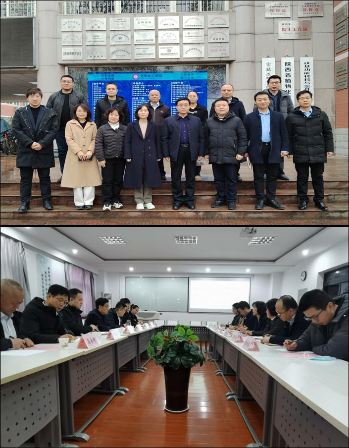 2月29日上午,宝鸡市科技局副局长闫明辉、科长杨文博,宝鸡鑫诺特材股份有限公司董事长郑永利、副总经理马宏刚等一行来公司交流校企合作事宜。金年会官方网站入口科研管理处处长、陕西省植物化学重点实验室主任王晓玲,化学化工公司党委书记兰佳,经理胡登卫等人在明理楼6楼会议室会见了到访人员,并举行座谈会。陕西省植物化学重点实验室副主任肖健主持会议。