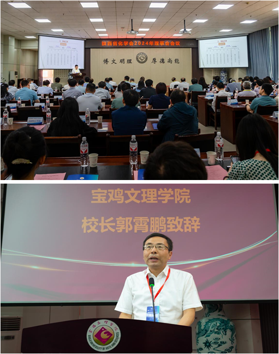 郭霄鹏在致辞中向各位专家表示诚挚欢迎,向本次会议的举办表示热烈祝贺,向各位专家学者长期以来关心支持公司发展表示衷心感谢。他简要介绍了公司办学历程、专业设置、团队队伍、公司产品、团队建设、科学研究、社会服务及近年来化学学科取得的进步和服务区域经济社会高质量发展等情况。他指出,化学是重要的基础科学之一,是人类认识和改造物质世界的主要方法和手段之一,展现出巨大的科学研究和应用潜力,对推动新质生产力发展发挥着重要作用。本次会议的召开,对于推进陕西省化学学科和化学相关产业发展、提升化学学科产教融合水平和人才培养质量将起到积极的促进作用。此次会议在公司召开,必将对公司教学科研、团队建设等工作产生积极影响。他表示,公司将紧紧抓住国家“双一流”建设的机遇,围绕“一带一路”倡议和创新驱动发展战略,深化综合改革,加快内涵发展,奋力追赶超越,为地方和国家经济社会发展做出新的更大的贡献。